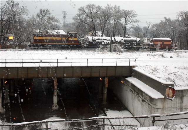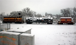 A few minutes later I was rewarded with the appearance of a locomotive, coil car and caboose from the South Chicago & Indiana Harbor Railroad.