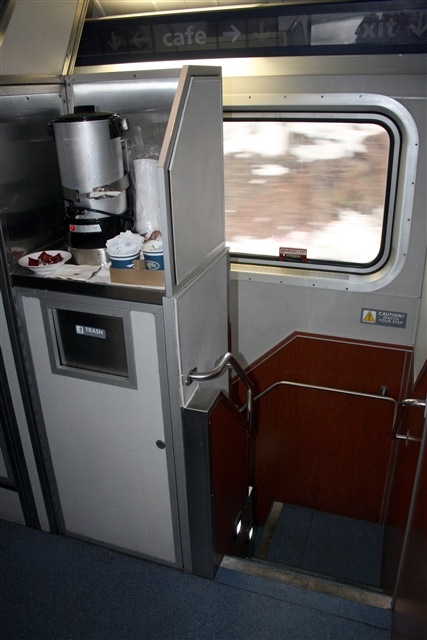 Although I was not taking a sleeping car on the Southwest Chief (La Plata was only five hours away), my roomette ticket from the CAP permitted me to use the lounge.  I had booked a lower level seat on the Chief, which is a tad roomier and less crowded than the upper passenger level.  Boarding the Southwest Chief,