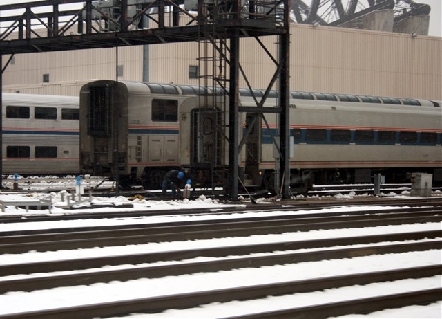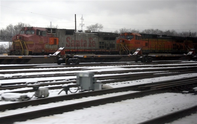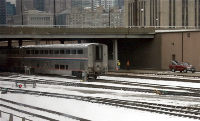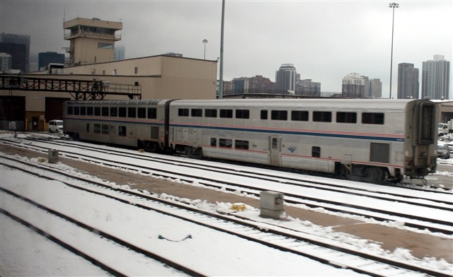 The Navy Pier is a favorite side trip for me when traveling through Chicago.  You can see photos of it in my previous travelogues (http://www.trainweb.com/travelogues/dutchmyers/).  Since the Capitol Ltd arrives about 845 AM and the Southwest Chief leaves for La Plata at 315 PM, there is ample time to visit the Navy Pier and any number of other Chicago sites.  With the famous Chicago winds blowing snow and temps in the 20s however, this was not the time to go sightseeing.  In any case, my plans for the Navy Pier were changed to sitting in the Metro Lounge, sipping hot tea, taking Tylenol sinus and watching movies.