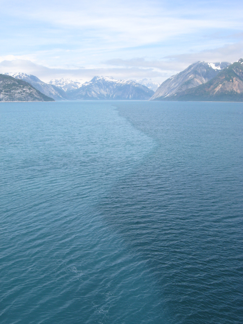 of Glacier Bay turn from blue to an emerald tint indicative of glacier fed