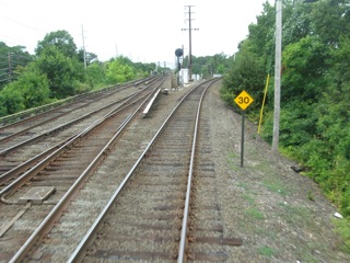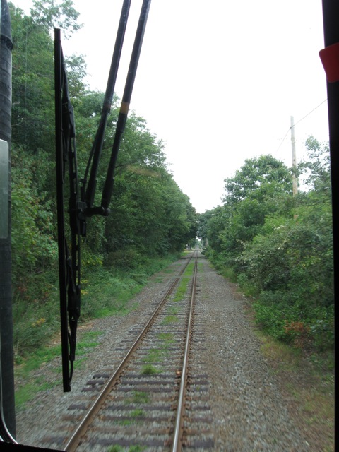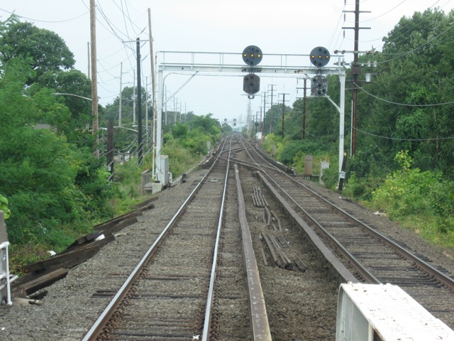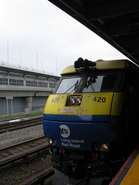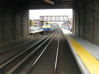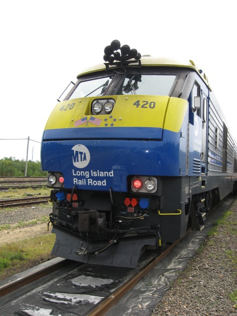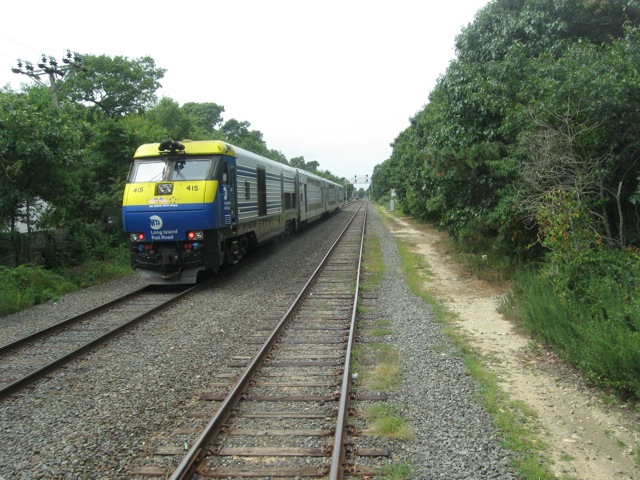 Westbound LIRR # 2707 is met near Mastic-Shirley |