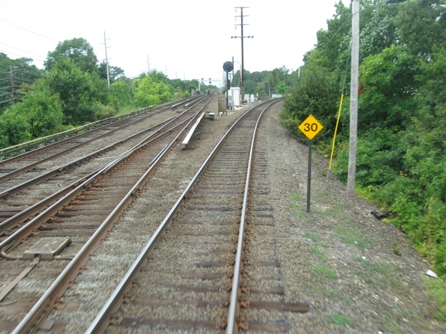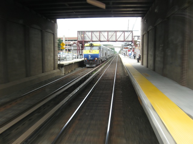 is stopped at this station before crossing over to the Oyster Bay Branch