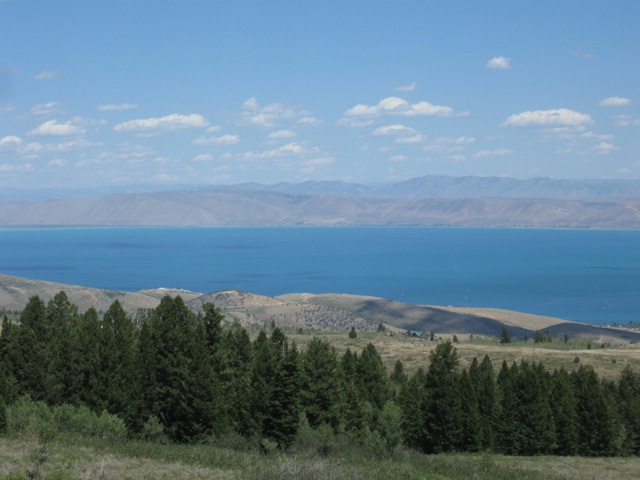 through Logan, UT then along huge Bear Lake whose deep blue waters and