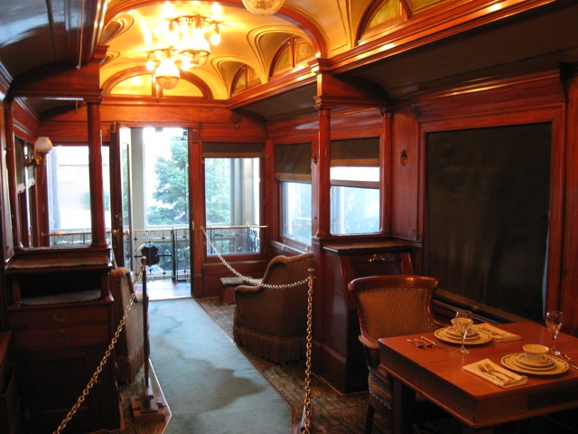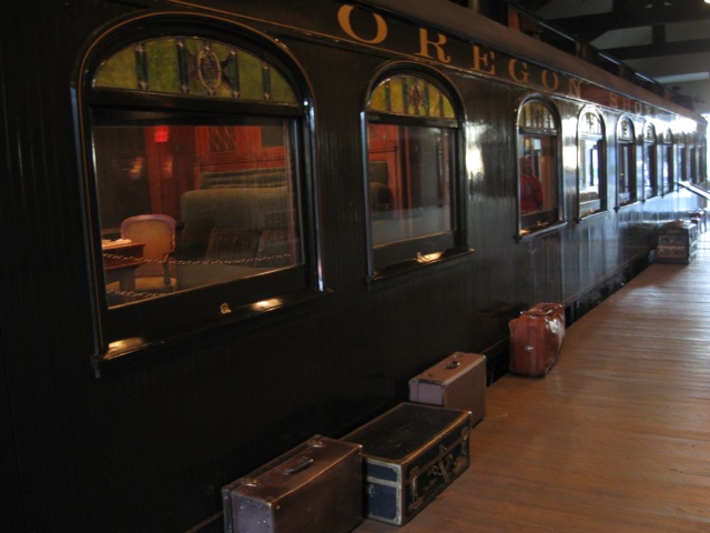 Former Oregon Short Line executive car # 1903 is housed inside the Holiday Inn