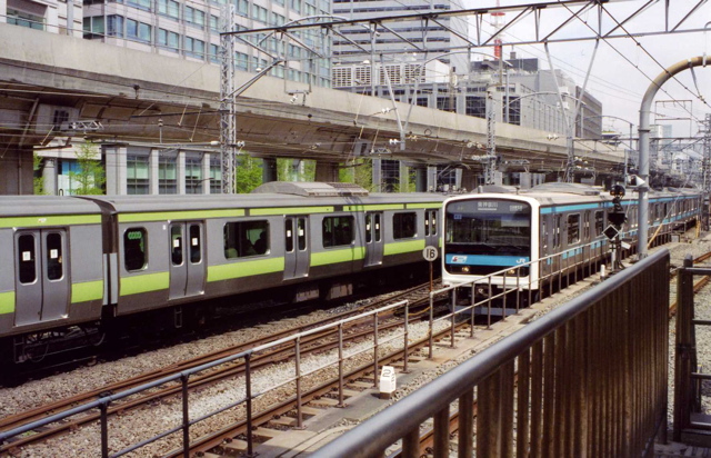 ![]() Keihin Tohoku and Yamanote trains passing at Tokyo |