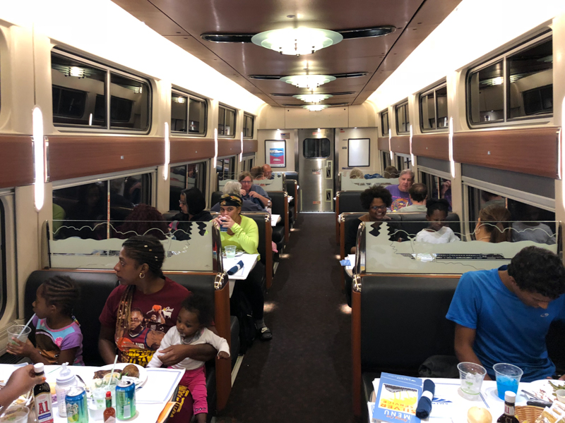 Breakfast time inside Viewliner II dining car “Atlanta”