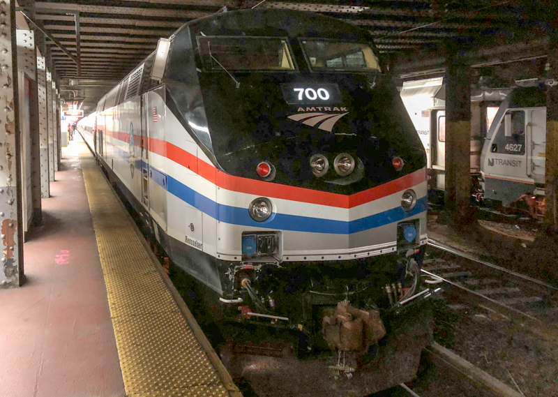 283 was led by dual mode engine # 700 wearing Amtrak’s belt stripe