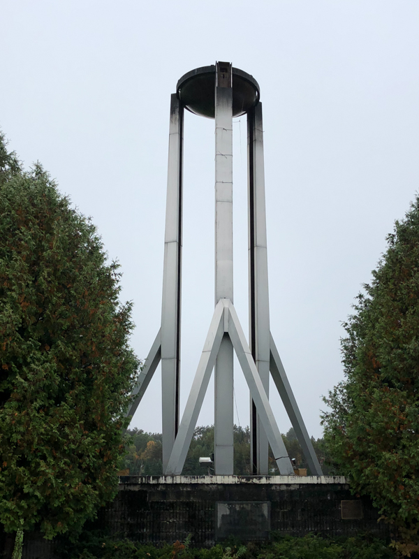 The cauldron housing the Olympic flame at the 1980 Winter Olympics