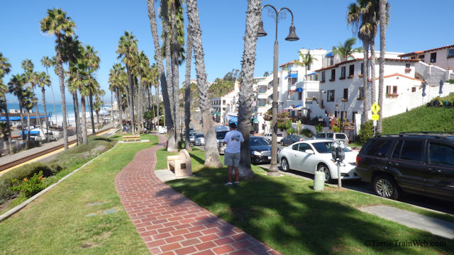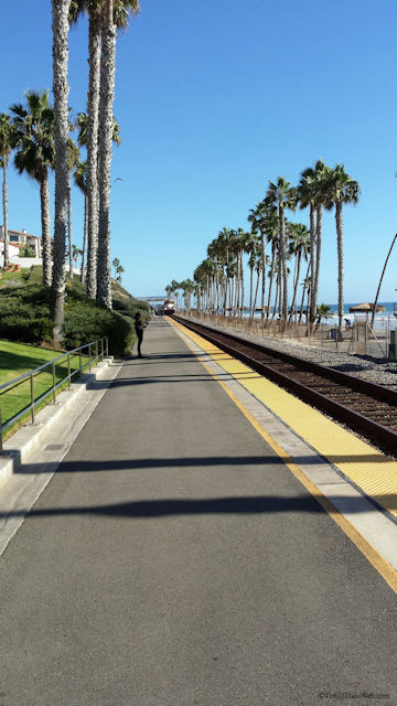 The 768 Surfliner departure from Anaheim was about 4 minutes late leaving for its 43 minute ride to San Clemente. We made station stops in Santa Ana, Irvine and San Juan Capistrano arriving on time at the Pier. The tracks loosely follow I-5 towards San Diego, until the route cuts towards the Pacific coast after the San Juan Capistrano stop.