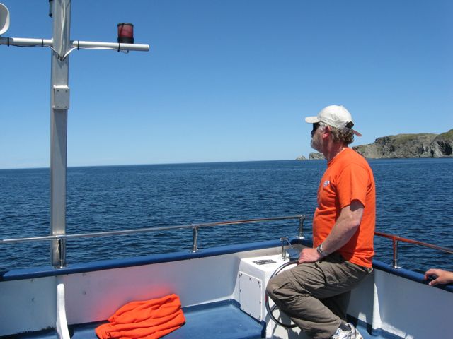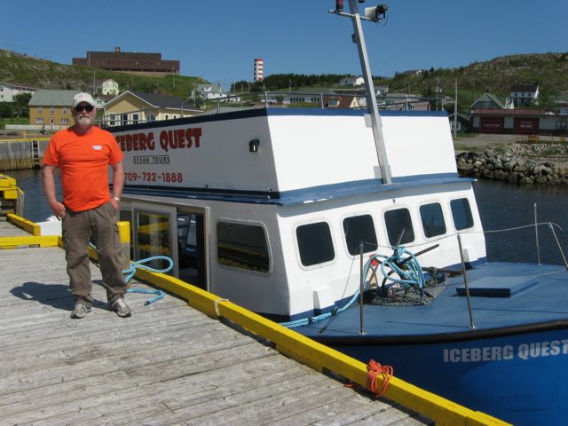 ![]() Captain Rogers poses beside the tour boat after returning to Twillingate. |