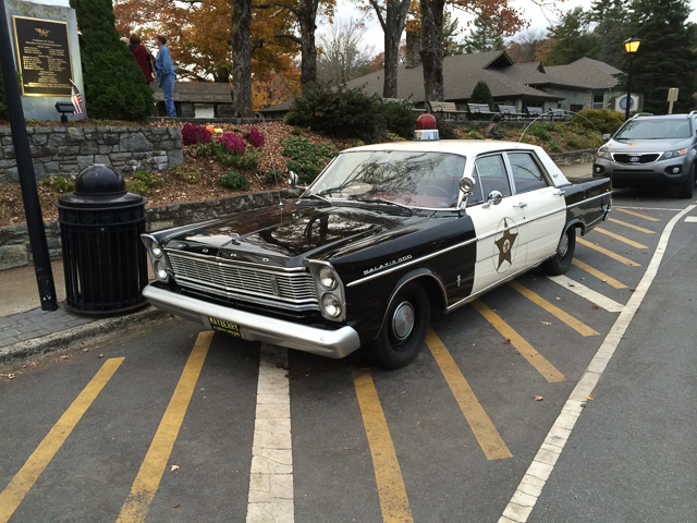 An Andy Griffith Show automobile graces Main Street in Blowing Rock, NC in October 2014.
