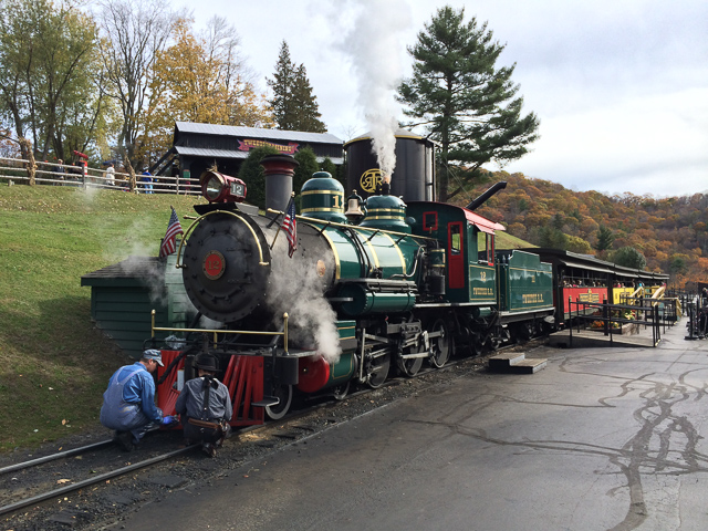 Tweetsie Railroad engine # 12 is serviced between runs by its engine crew in late October 2014.