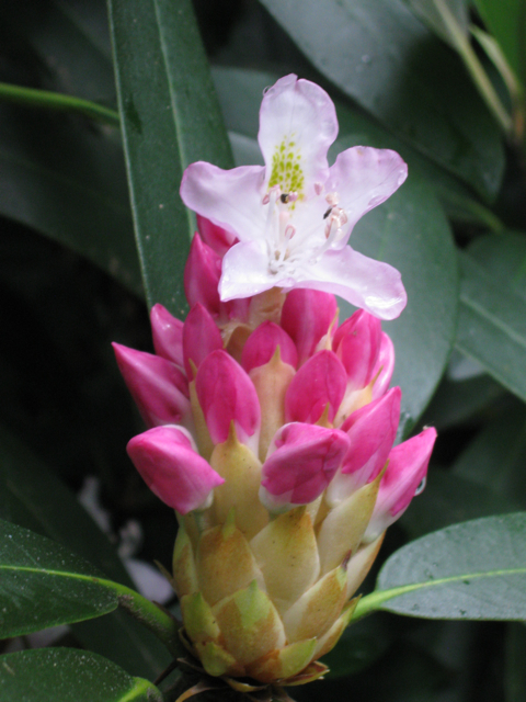 skirts a nearby picnic area set among the rhododendron bushes beside