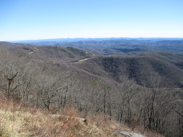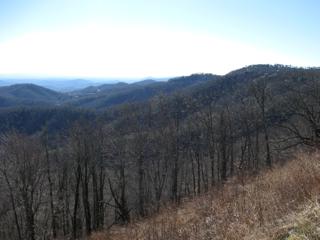 Mountains beneath the Blue Ridge Parkway and a parkway overlook called
