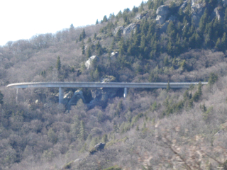passes over Linn Cove Viaduct skirting Grandfather Mountain and passes