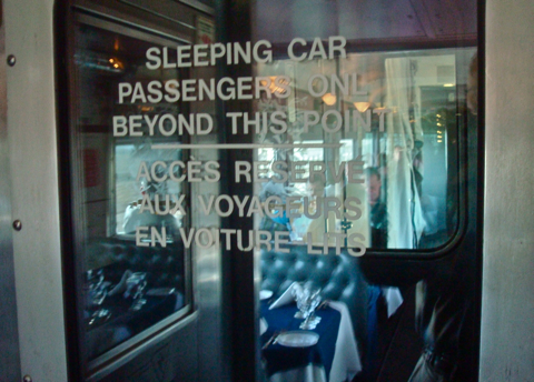 diner has a clear message etched in the glass: “SLEEPING CAR PASSENGERS