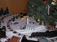 Christmas season 1992 found me unemployed in a house with a large living room. So with the little extra time that I had, I set up a Christmas tree layout. Unfortunely, the roll of film with the completed layout was lost, so this is all there is.
