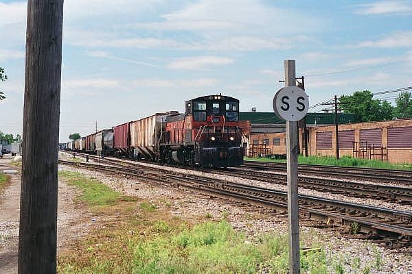 Milwaukee Road MP15AC During Franklin Park RR Days a local yard transfer came out of Bensenville yard, This wonderful switcher shows that you can try to take the Milwaukee Road out of the locomotive, but you will never will.