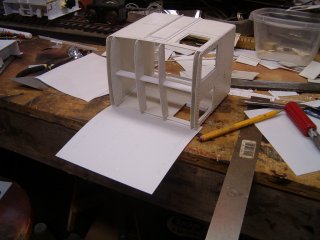The sides were cut from .040 styrene sheet and are assembled with a piec of 1/4" styrene angle reinforcing each corner and keeping everyting square. |