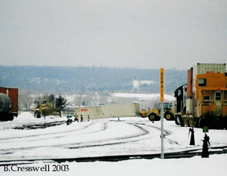 this photo was taken off the Lakeshore Road bridge looking west , This is the newly re-designed CPR/RAILLINK yard