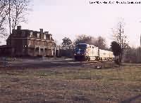 Normal duty for the F59s is on the two Piedmont trains, which leave Raleigh early and return late...westbound in the morning and eastbound in the evening, meaning out of the sun. In this part of the state the best one can do is something like this shot at Cary in March of 2001. |